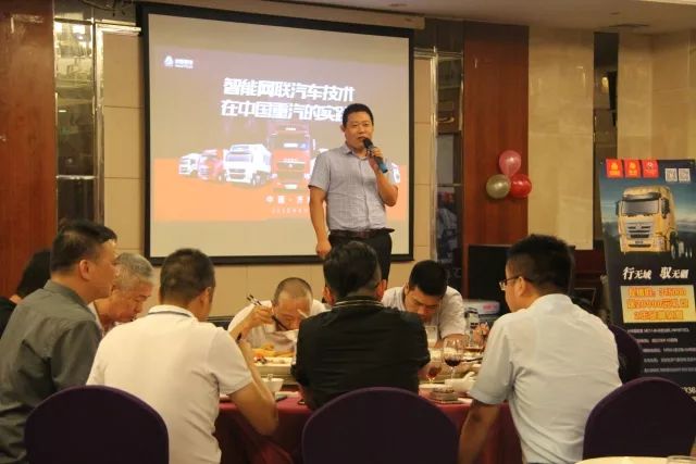中國重汽廣州分公司總經(jīng)理張培全先生致辭!并且開玩笑的說廣大汽貿(mào)向我們丟了一顆“炸彈”,可見此次活動優(yōu)惠力度空前(活動現(xiàn)場高朋滿座,非常感謝客戶們對中國重汽、廣大汽貿(mào)的支持)并向我們介紹了中國重汽的智能化卡車。